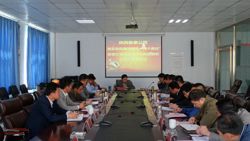 4月24日,陕西鲁泰公司召开2016年度党风廉政建设工作会议,传达学习十八届中央纪委六次、省纪委十届七次、市纪委十二届七次全会和市国资委、集团公司党风廉政建设工作会议精神,总结2015年度陕西鲁泰党风廉政建设和反腐败工作,部署2016年工作任务。会议由党总支委员田锋主持,党总支书记楚旭峰传达会议精神并讲话,公司总经理助理、百吉和亿隆项目部经理、公司机关及项目部部室(区队)主要负责人、部分中层副职参加会议。
