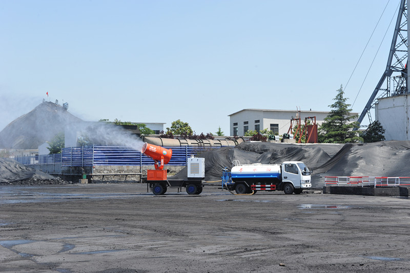 四是购买配备各类降尘设备。投资8.2万元购置移动式大功率雾炮一台,对矸石山、煤场进行动态喷雾降尘;投资50.8万元购买了洒水车、扫路车,对煤场公路定时洒水、冲刷,确保煤场公路100米内无扬尘;对工程洗车机进行整改,投资6.8万元进行改造后,完全能满足运煤大货车的清洗,经警队严格执行进出煤场车辆必须经洗车机清洗制度。