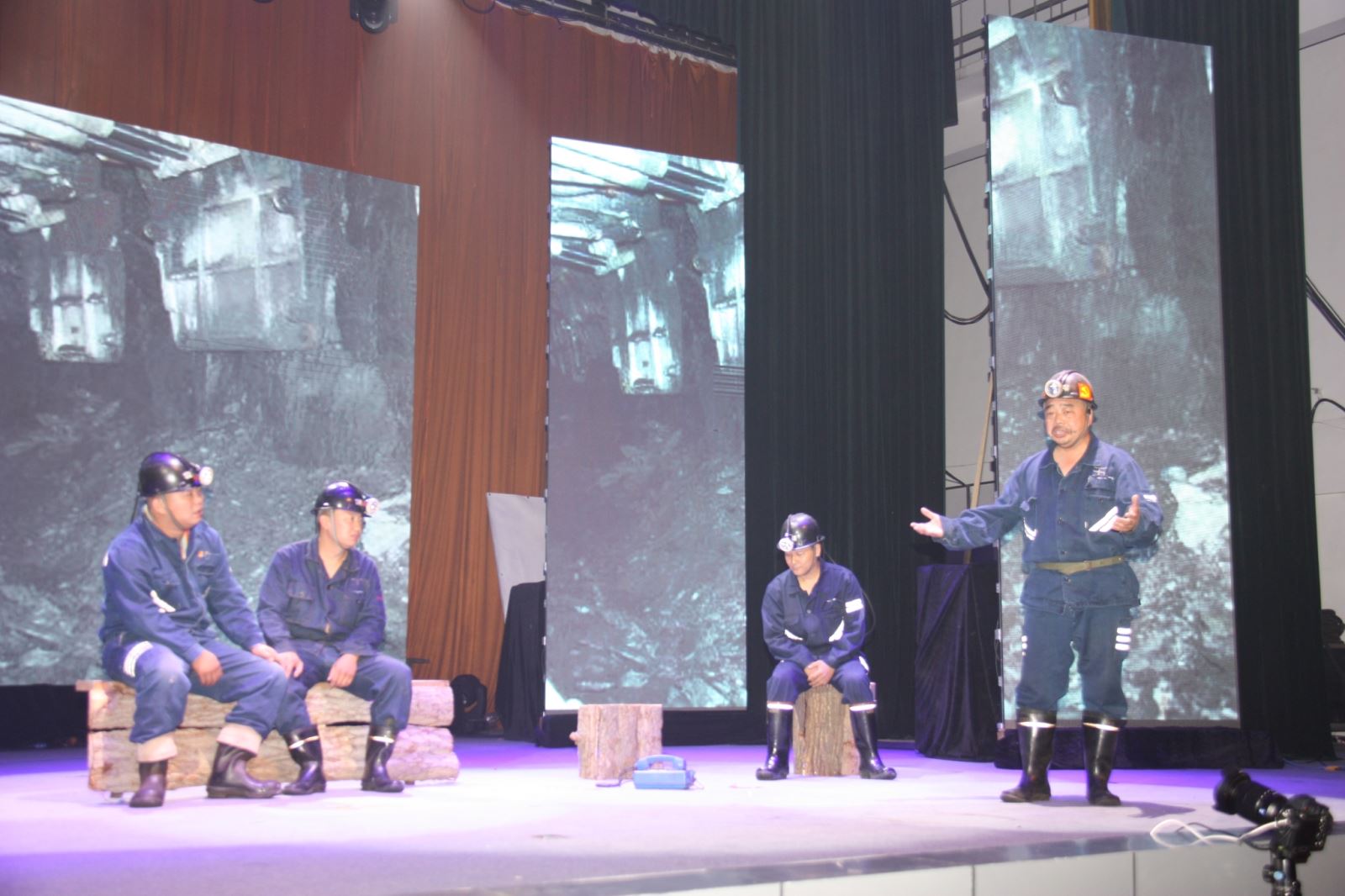 集团公司副总经理薛培华,集团公司政治部、工会办公室主要负责同志及矿党政班子成员亲临演出现场,与广大职工一起共庆党的生日,共品文化大餐,共度美好时光。矿党委书记汤保民作了情真意切的精彩致辞,并提议给在前排就坐的先模人物、优秀共产党员代表献花致敬。展演在阵容庞大、气势恢宏的大合唱《我们走在大路上》激越雄浑的歌声中拉开帷幕。