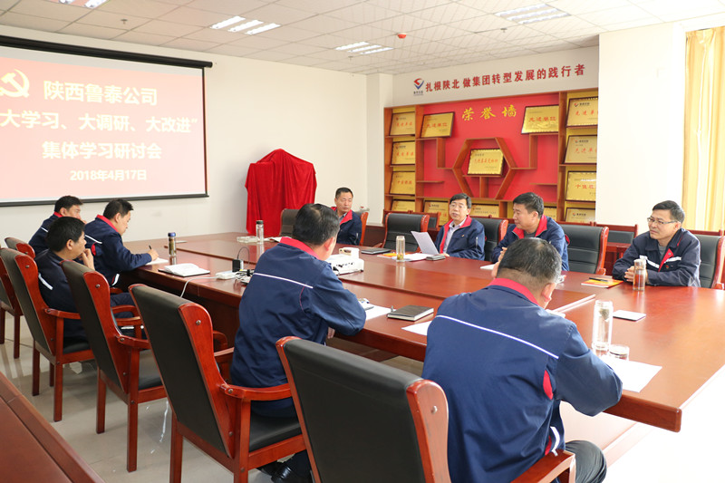 4月17日,陕西鲁泰公司党总支组织召开"大学习、大调研、大改进"集体学习研讨会,公司党总支书记、总经理楚旭峰主持会议,机关部分中层管理人员、党员列席会议。