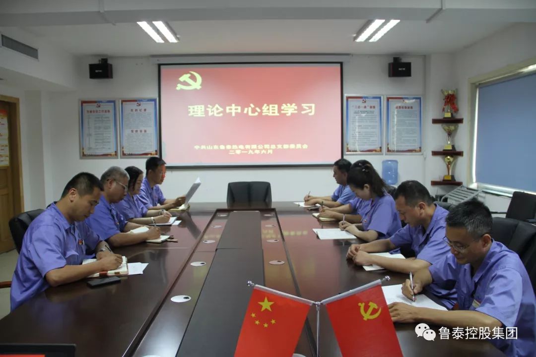 6月25日,鲁泰热电党总支在党员活动室召开理论中心组集体学习会议,该公司党总支书记、总经理王允来主持会议,公司领导班子、各支部委员参加会议。