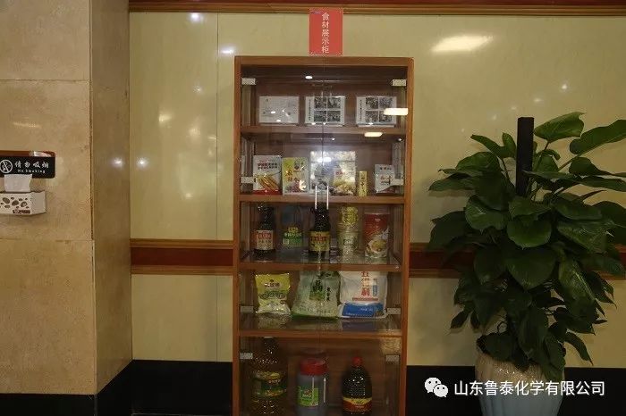 “ 吃出健康,吃出安全”是鲁泰化学餐厅秉持的食品管理理念。职工就餐区域食材展示柜内,整齐摆放着当天所用食材,所有食材生产日期、保质期一览无余,来源、出处均有据可查,清晰溯源。职工能看得见,摸得着,做到物物监督、时时监管。