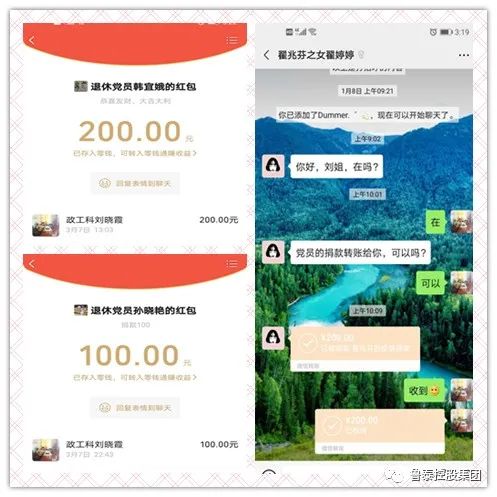 募捐期间,不论是年过8旬的老同志还是身患重病的困难党员纷纷慷慨解囊,分别以不同形式进行捐款。他们有的亲自将爱心捐款送到矿上,有的通过微信、支付宝转账,还有的让子女、亲朋代缴。“微信到账100元。”“支付宝到账200元””手机银行转账450元”。“刘科长,这是我爸的一点心意,帮忙转交一下。”……此起彼伏的到账提醒,接连不断的语音留言,不时的从太平煤矿政工科副科长刘晓霞的手机里传来,如春风般温暖着人心。截至3月8日下午5时,共募集爱心捐款5340元。