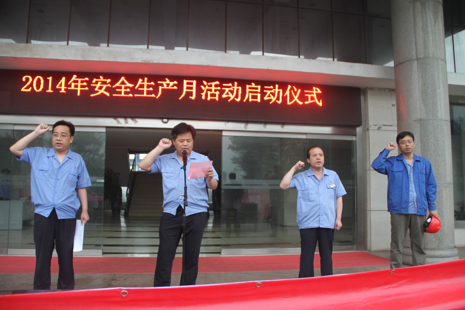 随后,分管安全副总经理张文学带领广大干部员工进行了安全宣誓,并在"强化红线意识,促进安全发展"的安全月主题条幅上签下了自己的名字。