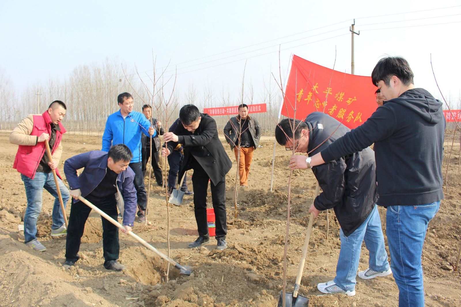 今年3月12日将迎来第37个植树节,为切实增强广大团员青年的生态文明意识,大力推进我市全国绿化模范城市创建工作,根据团市委和集团公司团委要求,太平煤矿团委积极组织12名青年志愿者来到二十里铺街道张马行村绿化基地参加"青春绿色行动•共建美丽济宁"为主题的义务植树活动。