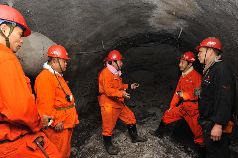 到矿后,虢洪增一行直接更换工作服下井。在井下-450米南翼胶带机大巷掘进工作面,虢洪增检查了工作面整体安全生产情况,并与掘二工区干部职工亲切交谈,询问工人精神状态,叮嘱干部职工扎实抓好安全生产工作,确保企业安全稳定。关延忠仔细检查了工作面安全生产和工程质量情况。掘二工区区长朱正强汇报了工区开展精益管理抓好工程质量、严格落实集团公司33320安全管理模式抓好现场安全管理等工作开展情况。