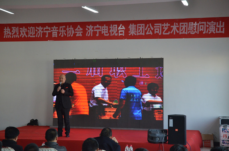 "塞上三九冰雪寒,慰问情深人心暖"。正值宁夏鲁泰公司全体干部职工,为完成新的一年目标任务"撸起袖子加油干"的时刻,集团公司副总经理薛培华、集团公司工会办主任胡伟等公司领导带着济宁市音乐协会、济宁市电视台及集团公司职工艺术团一行20余人风尘仆仆,不辞劳苦、不畏严寒、不远千里来到宁夏大地,为宁夏鲁泰干部职工送来了一台精彩的文艺节目。集团公司副总经理薛培华代表集团公司向宁夏鲁泰全体干部职工发表了亲切慰问讲话。