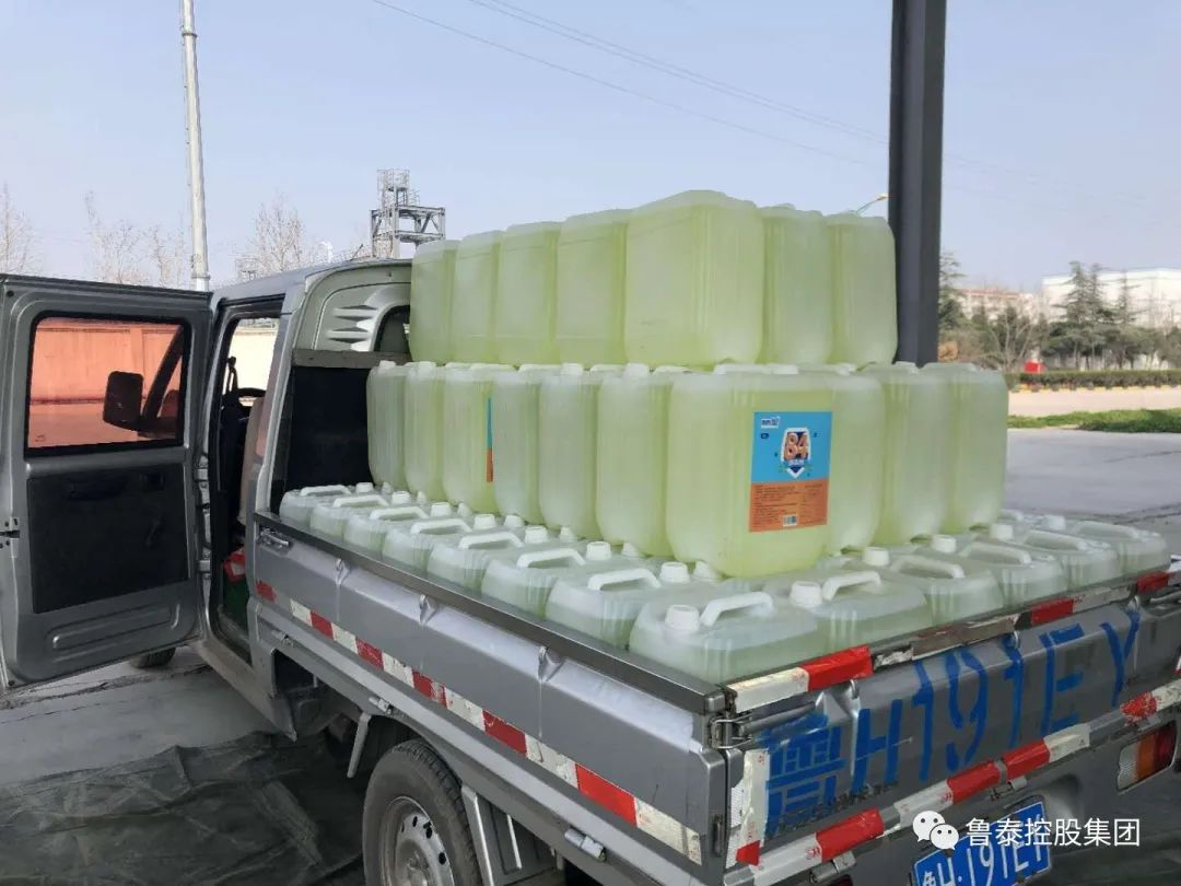 为更好地协助社会各界抗击疫情,积极履行国有企业社会责任,3月8日,集团公司首批“鲁泰星”牌84消毒剂成功投放市场。首批产品共有5L、10L、20L三种规格,非常方便各企业、店铺及社会群众使用。