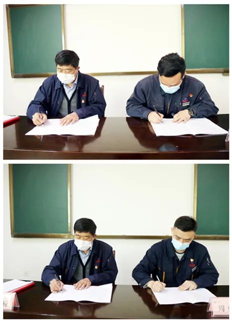 述职评议后,张玉标分别与基层党支部书记签订了2020年度《全面从严治党责任书》《企业意识形态工作目标责任书》。